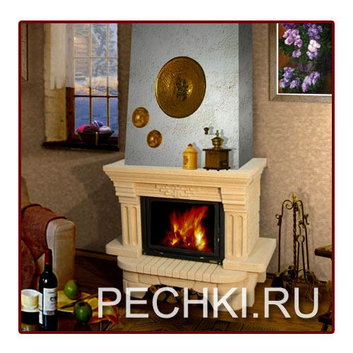 Каминная облицовка СОНАТА предназначена для отделки топок 700 серии из чугуна или стали закрытого типа (с дверцей, застекленной термостойким стеклом). Детали облицовки СОНАТА изготавливаются из искусственного камня бежевого цвета. Пристенная каминная облицовка СОНАТА из камня МЕТА Stone. Каминная облицовка СОНАТА серии "Музыка огня". Сертифицирована. Каминная облицовка СОНАТА адаптируется со всеми моделями топок 700 серии, кроме топок с подъемным механизмом..