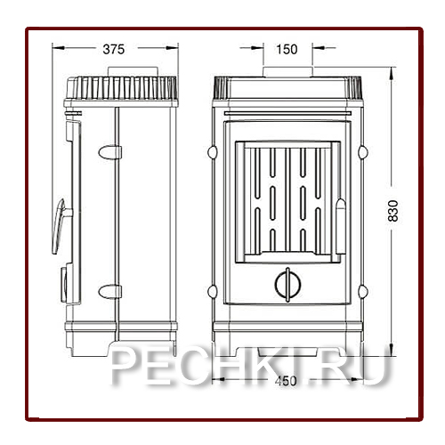 Крупное - 361х271 мм, огнеупорное вертикальное стеклокерамическое остекление производства Германии, снабженное системой «чистое стекло» позволяет в полном объеме видеть даже языки пламени. Дверка размером 524х373 мм, имеет удобную ручку плотного запирания.