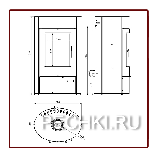 Диаметр дымохода - 150 мм