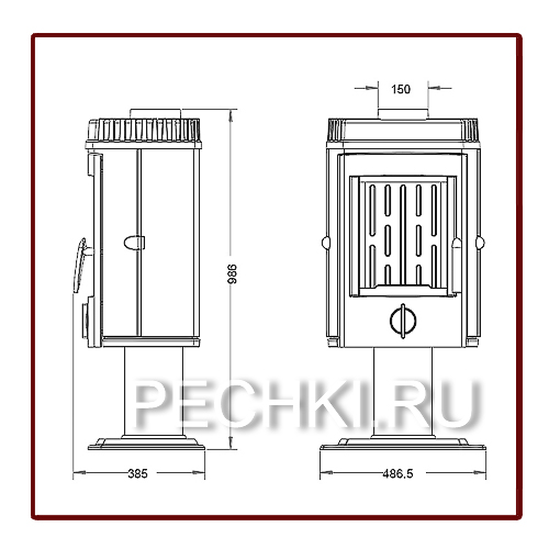 Крупное - 361х271 мм, огнеупорное вертикальное стеклокерамическое остекление производства Германии, снабженное системой «чистое стекло» позволяет в полном объеме видеть даже языки пламени. Дверка размером 559х371, имеет удобную ручку плотного запирания.