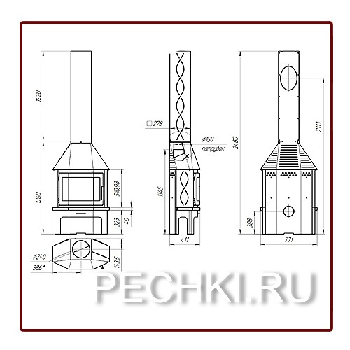 По бокам, в виде рисунка, расположены конвекционные отверстия, которые позволяют быстро и эффективно прогревать помещение.