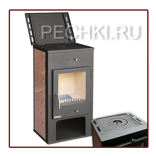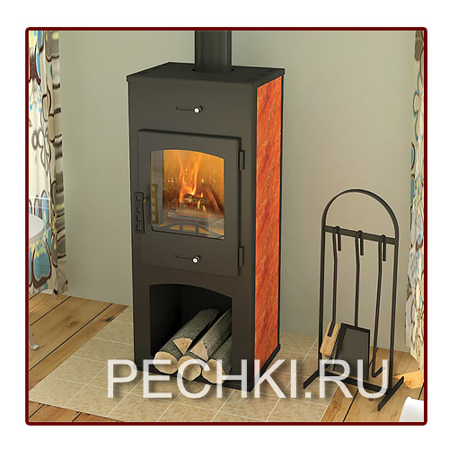 одной конфоркой. Топочная камера футерована легко сменяемыми шамотными и вермикулитовыми плитами, позволяющими выравнивать перепады температуры и продлить срок службы изделия. Для подключения к дымоходу используется патрубок расположенный сзади. Модель имеет наружную отделку, выполненную с использованием керамической плитки. Конструктивные особенности камина обеспечивают быстрый нагрев помещения за счёт конвекции. Печь-камин НАРВА изготовлена по международным технологическим стандартам и адаптирован к российским климатическим условиям.