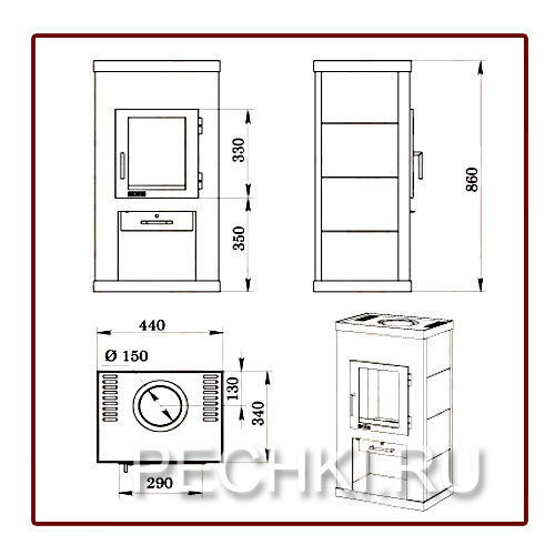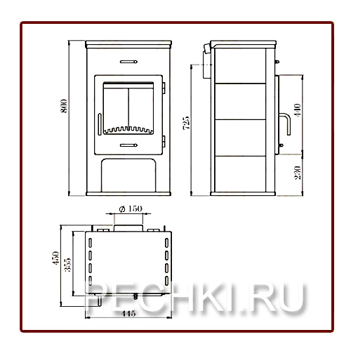 Технические характеристики: Площадь отапливаемого помещения - до 60 кв.м Мощность - 6 кВт Диаметр дымохода - 115 мм Высота - 1035 мм Ширина - 440 мм Глубина - 405 мм Вес - 80 кг Тип: дровяная печь камин Производитель: Мета, Россия