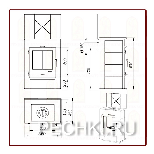 Мощность - 9 кВт Максимальная длина дров - 35 мм Диаметр дымохода - 150 мм Высота - 865 мм Ширина - 560 мм Глубина - 480 мм Вес - 131 кг Витрокерамическое стекло, термостойкость до 700С Система - чистое стекло Тип: дровяная варочная печь камин