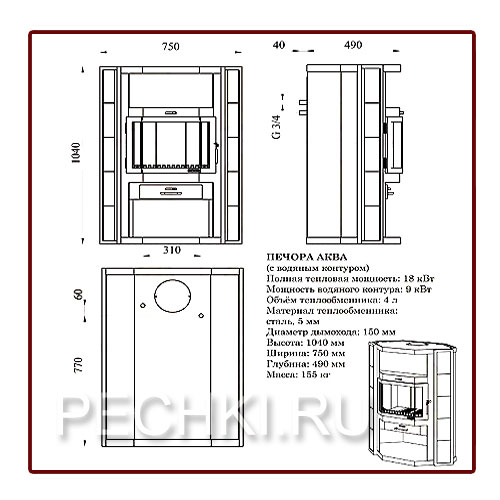 Графические материалы по серии печей каминов ПЕЧОРА АКВА: