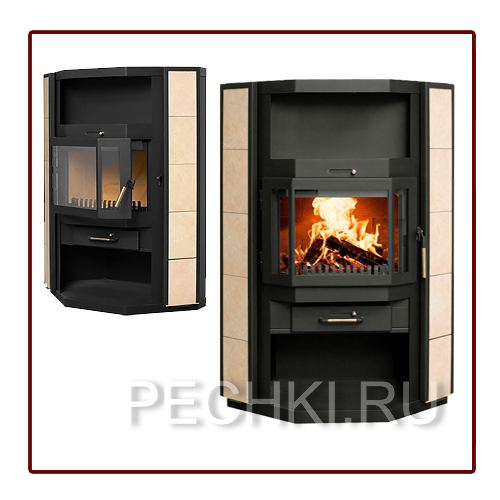 Пользуется большим спросом печь камин ПЕЧОРА - мощность у нее такая же (9 кВт), остекленнение практически как у АНГАРЫ, а цена ненамного, но выше. Собрат печи камина ПЕЧОРА - это безоблицовочная ВИСЛА. Печь камин ПЕЧОРА углового исполнения - современный, высокоэффективный отопительный агрегат, сочетающий в себе качество открытого камина - возможность наблюдать за живым огнем, наслаждаться конвекционным теплом, быть в абсолютной безопасности от искр и сажи, регулировать силу пламени и длительность горения с безопасностью и эффективностью отопления закрытой печи. Наряду с лучистым теплом через прозрачное стекло печь камин ПЕЧОРА дает преимущественно (до70%) конвекционного тепла. Между внутренним и внешним корпусами располагаются каналы, в которые поступает холодный комнатный воздух и, нагреваясь, опять возращается в помещение. В результате уже через 5-20 минут воздух в помещении прогревается. Благодаря регулировке тяги температуру в помещении можно поддерживать комфортно равномерной. При полной загрузке дров (3-4кг) в режиме долгого горения печь камин ПЕЧОРА поддерживает тепло в течении 6-8часов. В качестве топлива используются сухие дрова или брикеты бурого угля. Печь камин ПЕЧОРА предназначена для эксплуатации в условиях умеренного и холодного климата в капитальных жилых помещениях. Корпус печи камина ПЕЧОРА выполнен из листовой стали. Все металлические поверхности окрашены черной жаропрочной краской. Боковая поверхность печи камина ПЕЧОРА облицована керамической плиткой. Топочная камера печей каминов ПЕЧОРА выложены шамотной (огнеупорной) плиткой. К достоинствам внутренней футеровки следует отнести то, что она выравнивает перепады температур, а также позволяет дольше сохранять тепло, когда пламя уже погасло. Кроме того благодаря применению шамотных плиток, все печи камины ремонтнопригодны - каждая плитка легко заменяется в случае какого-либо повреждения. Печи камины ПЕЧОРА изготовлены с применением импортных комплектующих в соответствии с немецкими технологическими стандартами, адаптированы к климатическим условиям в России. Печь камин ПЕЧОРА предназначена для обогрева жилых помещений, коттеджей и дач, площадью до 95 кв.м.