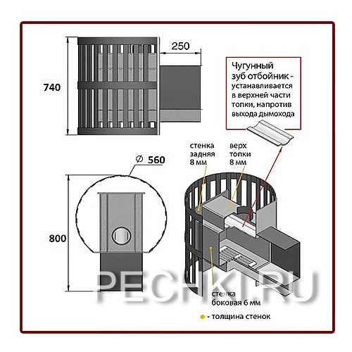 Толщина закрытой каменки