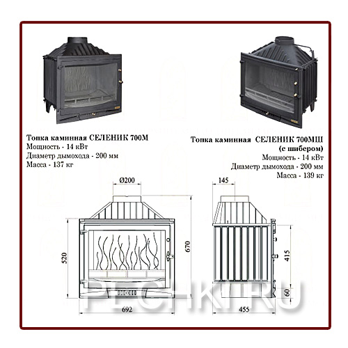 Чугунная топка СЕЛЕНИК 700 с боковым открыванием двери имее прямое обзорное стекло и регулируемую в закрытии дверцу. Стеклокерамика выдерживает температуру 750 градусов С. Коэффициентом линейного расширения ноль. Увеличенный дымосборник.