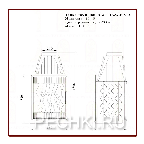 Каминная топка ВЕРТИКАЛЬ 840 Технические характеристики: